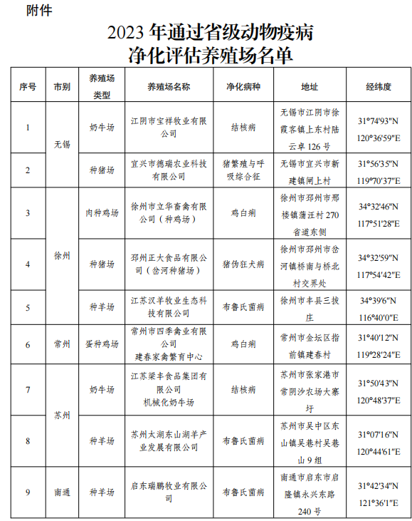 12月15日,江蘇省農業農村廳發布省級動物疫病凈化場名單蘇農便〔2023〕408 號,我司瑞鵬牧業經專家評審,被評為省級羊布魯氏菌病凈化場。